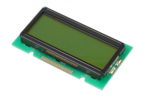 Aakkosnumeerinen LCD-moduuli. Näytöissä valmis ohjauspiiri ja merkkigeneraattori ASCII-koodille.