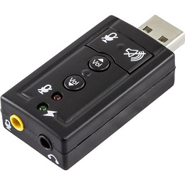 Äänikortti USB-porttiin, kuuloke- ja mikrofoniliitokset, 2x3,5mm, äänenvoimakkuuden säätö ja äänenvaimennus.