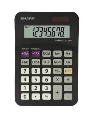 Suuri 8 merkin näyttö. Paristo- ja aurinkokennokäyttöinen. Kate-, vero- ja prosenttilaskenta. 3 muistipaikkaa. Automaattinen virrankatkaisu.
