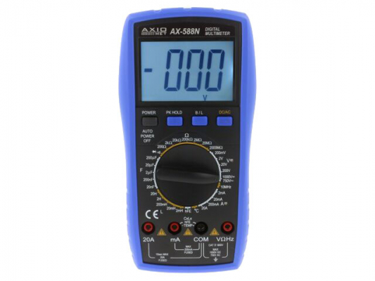 Mittaussuureet: AC-jännite, AC-virta, DC-jännite, DC-virta, induktanssi, kapasitanssi, lämpötila, resistanssi, transistoreiden hFE