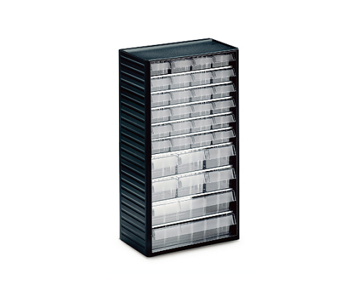 Laatikostoja voidaan kiinnittää ruuveilla seinään, koota pyöriviin telineisiin, lattiatelineisiin ja vaunuihin tai käyttää tarvikevarastona työpöydällä. Laatikostot sisältävät harmaan kehikon, lasinkirkkaat pikkulaatikot ja tarraetiketit. Kehikko on polypropeenia, hyllyt sinkittyä teräslevyä ja laatikot polystyreeniä.